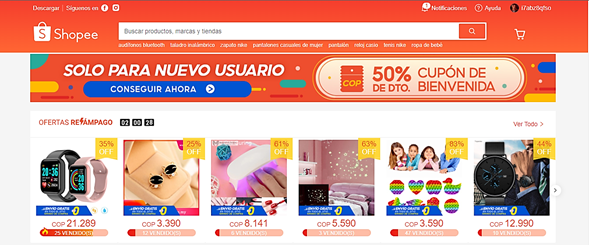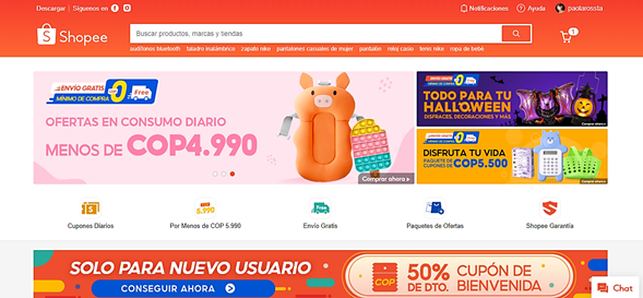 Al inscribirme, Shopee me obsequió un cupón de bienvenida del 50%. Para aprovecharlo sólo tuve que dirigirme a la página de inicio.