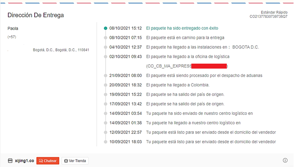 Estas fueron todas las actualizaciones que tuvo el pedido en su recorrido desde China a Colombia