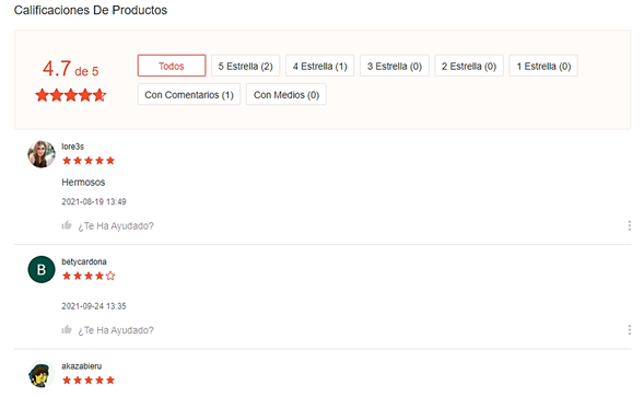 Algo muy importante que noté, es que por lo general cada producto cuenta con una valoración, y está representada por estrellas. Al pulsar sobre ellas logré observar las opiniones de otros usuarios acerca de dicho artículo, así como fotos reales tomadas por aquellos compradores.